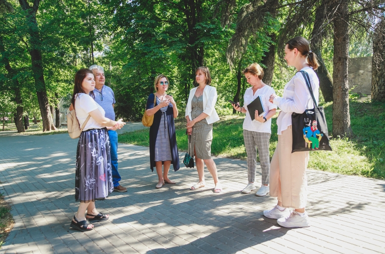 В городе мы встретились с разработчиком проекта по восстановлению пешеходного перехода Борисом Бондаревым, начальником управления архитектуры департамента градостроительства и архитектуры Дианой Полуэктовой, заместителем начальника городского управления главного смотрителя Людмилой Кулаковой и вместе осмотрели мозаку. После чего художница осмотрела её более детально, зафиксировала утраты, сделала необходимые замеры.