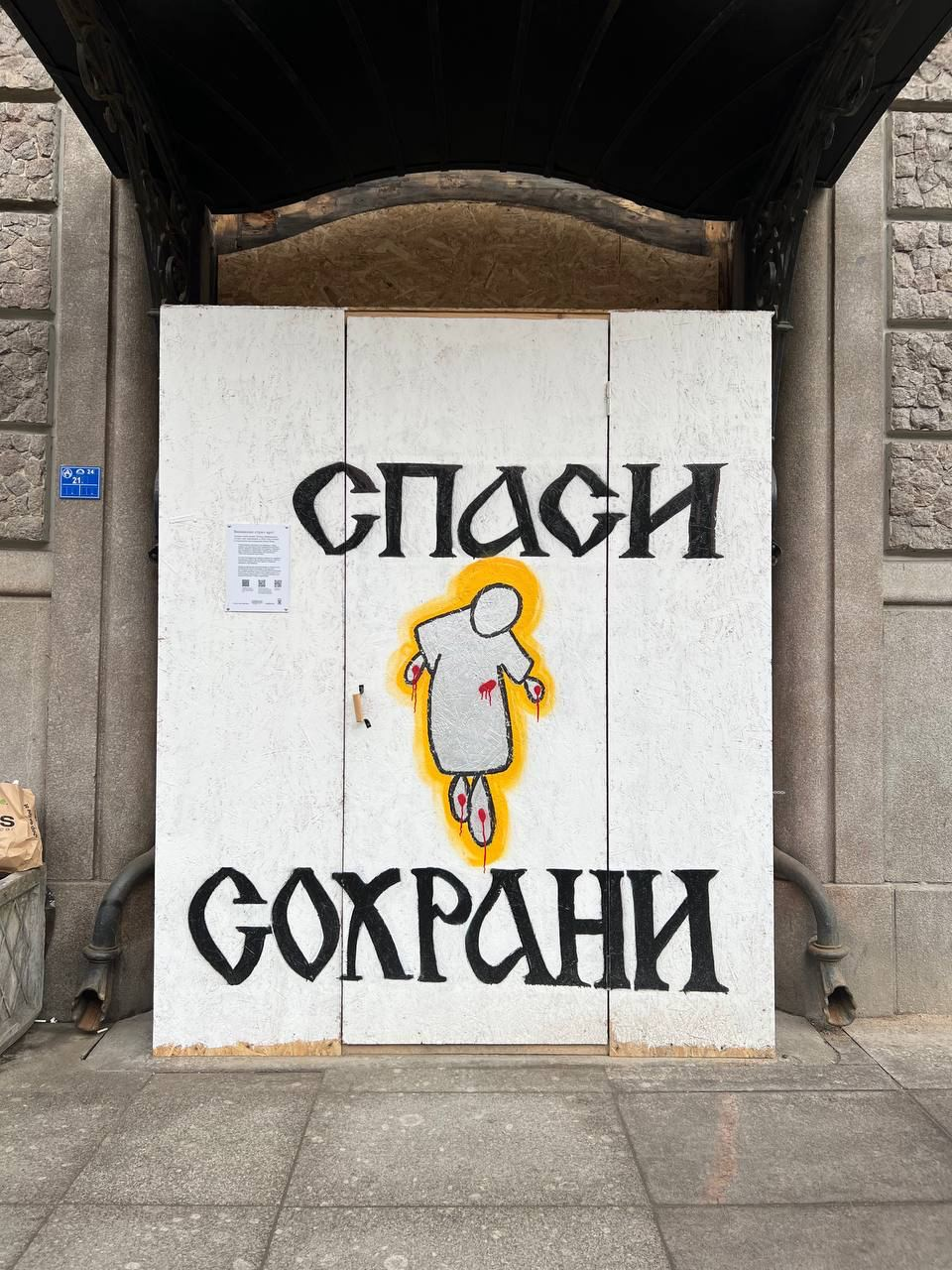 Несколько недель назад мы запустили проект «Внимание: стрит-арт!» совместно с САХ. В рамках проекта мы подготовили две площадки на временных коробах дома Бака, для того, чтобы уличные художники их расписывали. Коробы закрывают вход в парадные на время реставрации. Для росписи одной площадки мы приглашали художников Диму Ретро и Ульяну Полоз (о третьем художнике мы совсем скоро расскажем), а вторую оставили пустой.