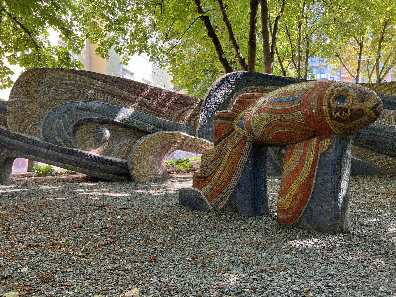 Свои проекты не забываем. Сходили в гости к мозаичной скульптуре «Рыбка и волна».