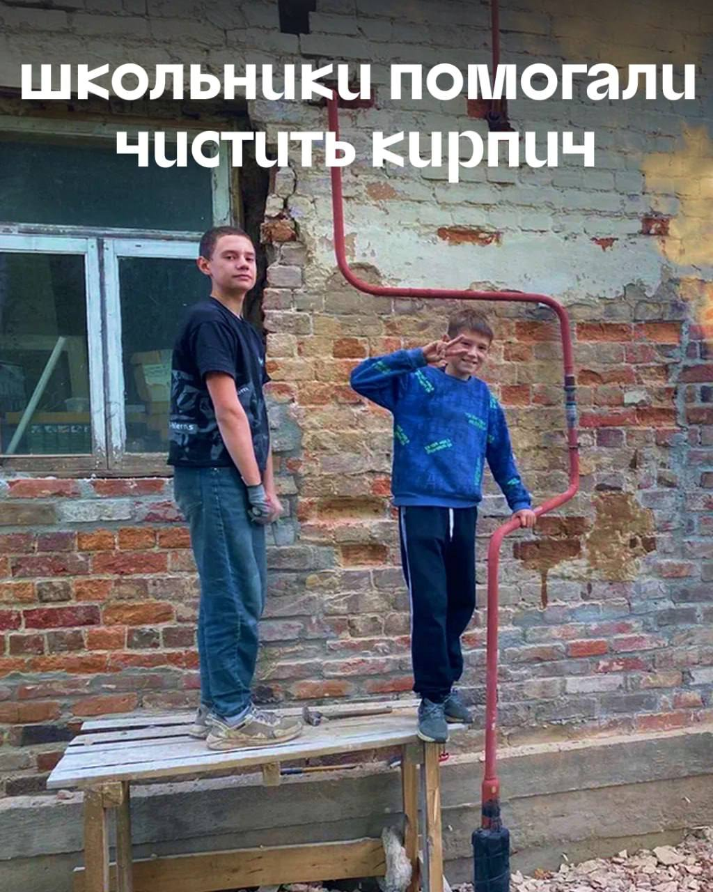 4. Местные школьники активно включились и летом имели возможность заработать, помогая чистить старый кирпич от известкового раствора.