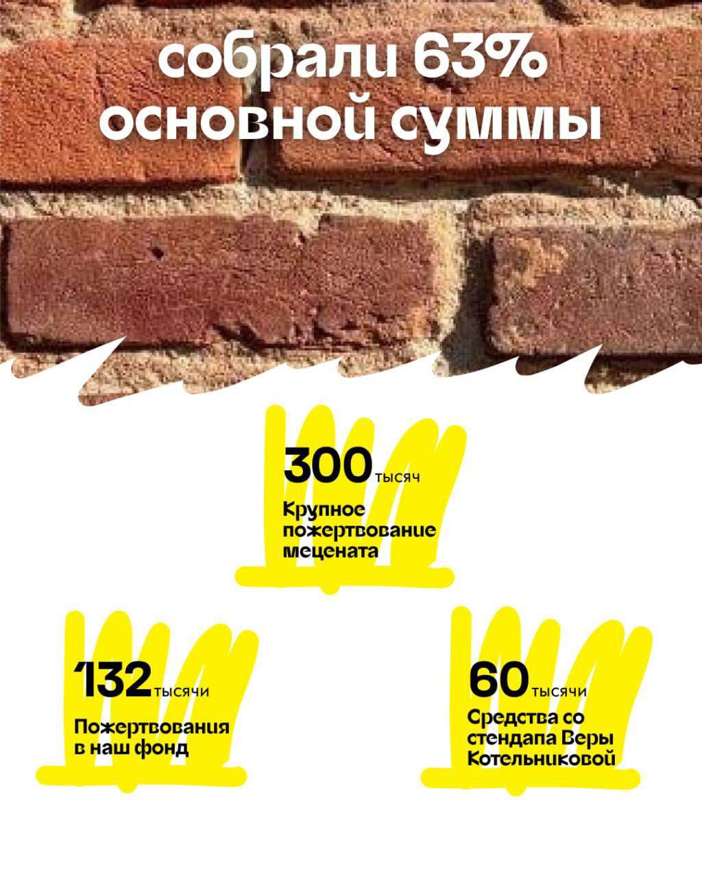 Благодаря кому все это стало возможным? Вам, перечислившим 132 тыс руб. Комиксе и актрисе Вере Котельниковой, которая провела стендап в пользу проекта. Бизнесмену и его семье, пожелавшим остаться неизвестными.