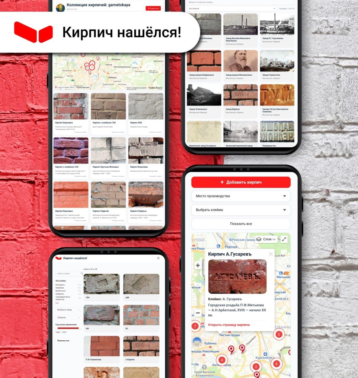 Но главное — платформа создана для сообщества: каждый из вас может добавить собственную находку, пополнить каталог клейм и кирпичных заводов или просто поделиться радостью от пополнения своей коллекции.