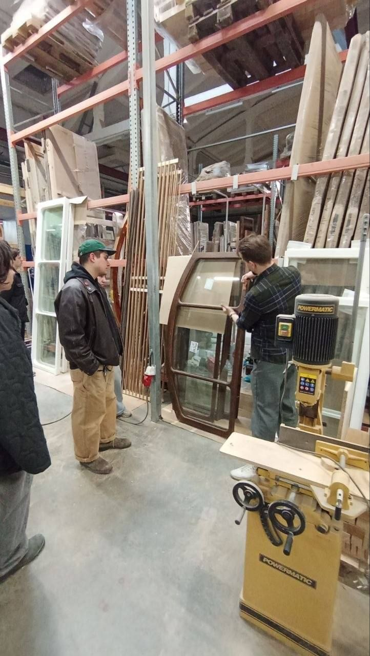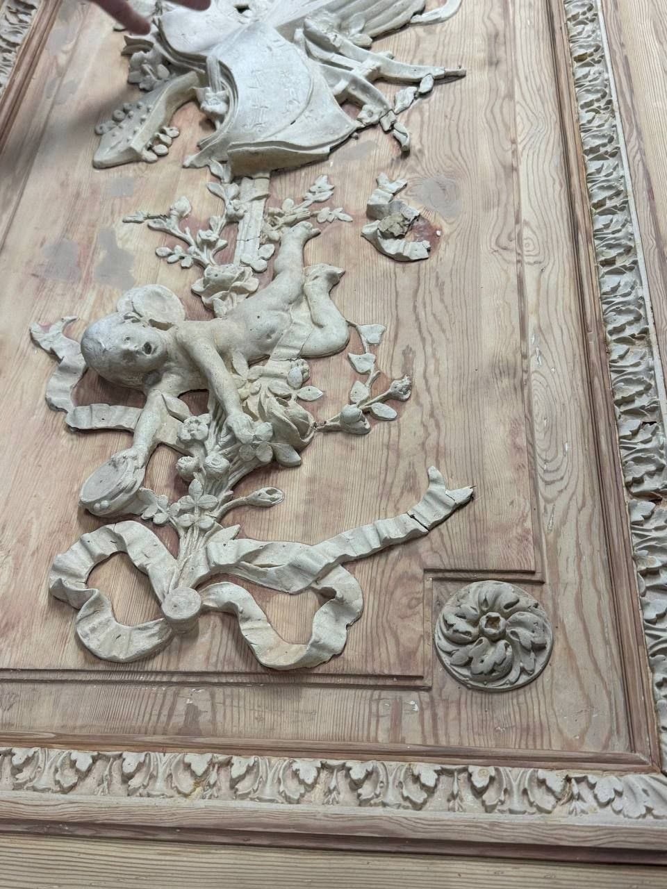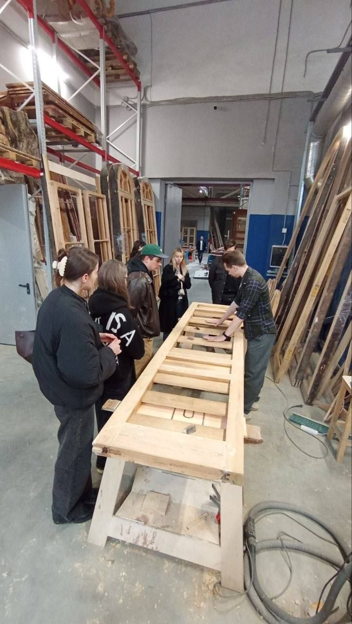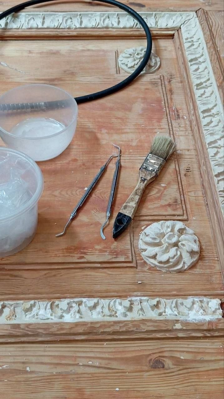 В течение двух часов говорили с руководителем цеха Михаилом о нюансах работы с историческими материалами, технологиях и сложных кейсах. Удалось увидеть вживую, как реставрируют двери, оконные рамы и лепной декор.