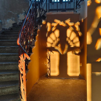 Печь установлена при строительстве дома в 1904 году для отопления второй парадной. В первой парадной тоже когда-то была печь, но в советские годы её демонтировали.