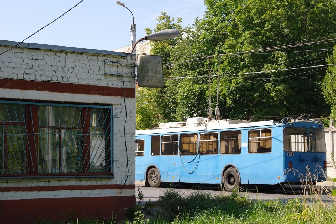 Второе табло красное. Установлено на диспетчерской рядом с домом 184 по Тарутинской улице, остановка «Ольговская улица», конечная для троллейбусов номер 8. Этой остановкой также пользуются пассажиры автобусов и маршруток. На данном табло был белый фон и красные буквы.
