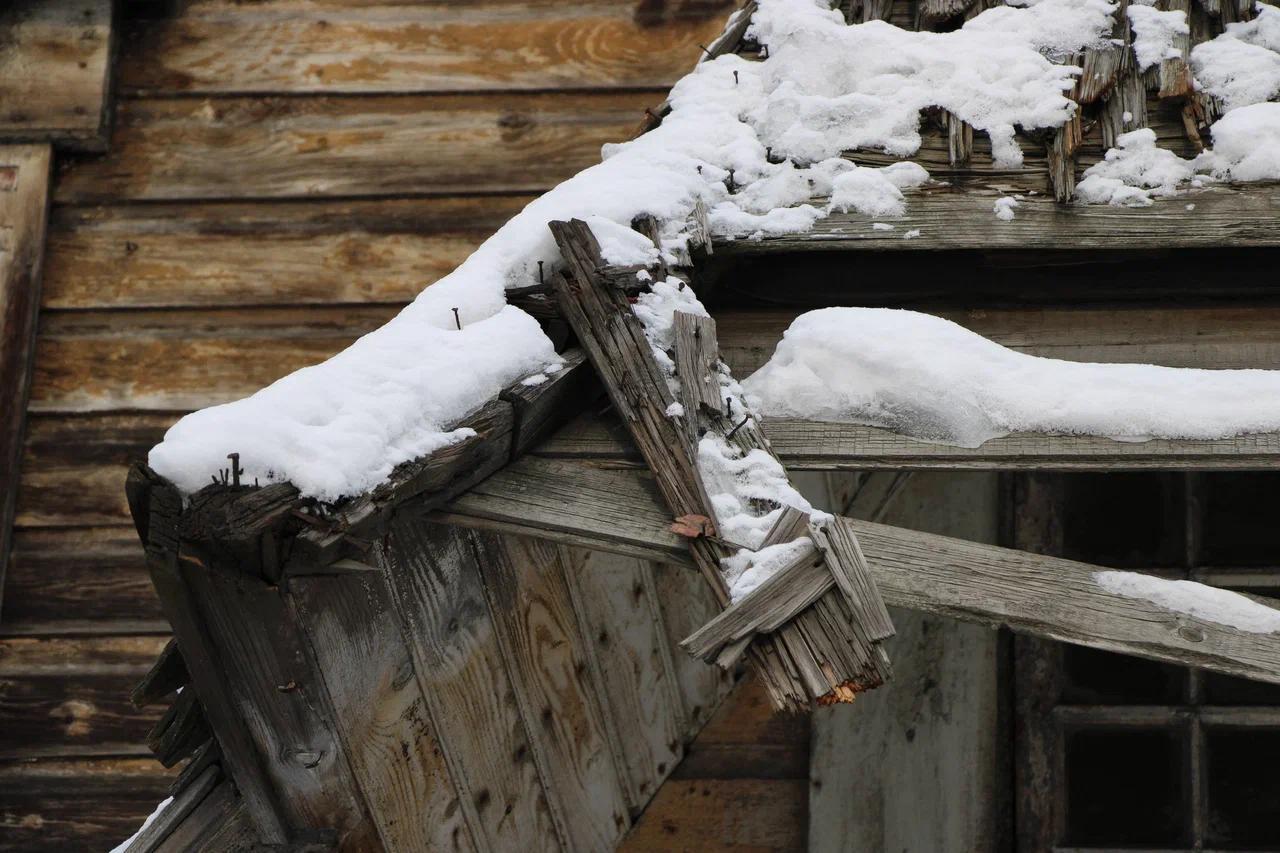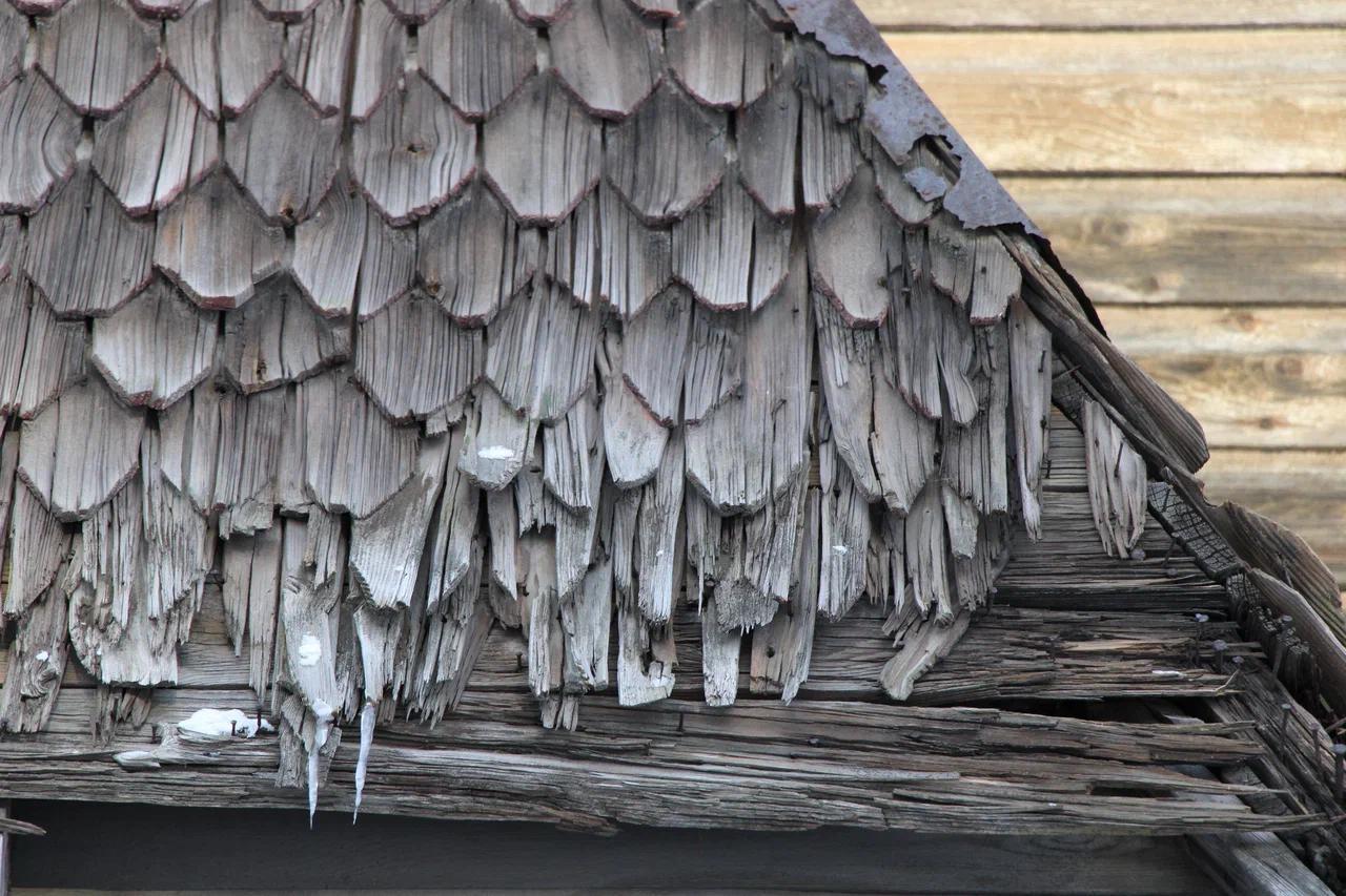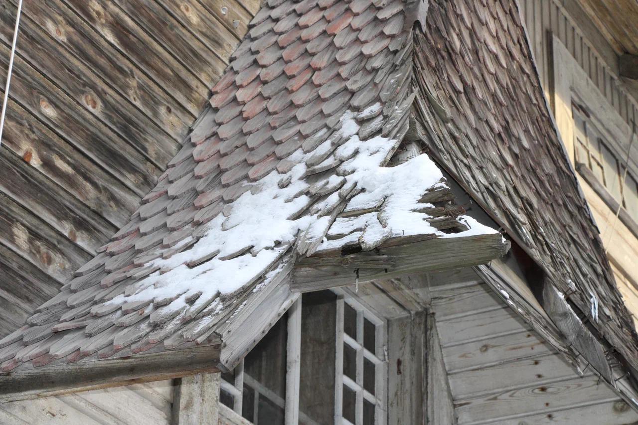 По результатам технического обследования износ козырьков составляет 80%. Доски поражены гнилью, часть элементов утрачена, верхние и нижние слои покрытия отпадают.