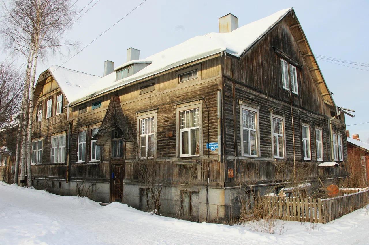 В одном из исторических районов Сортавалы, на улице Советской (бывшая Kauppakatu), стоит деревянный жилой дом рубежа веков, построенный по проекту строительного мастера Юхо Кустаа Алхайнена. Это характерный для XIX–XX веков дом с асимметричной композицией фасада, трапециевидной мансардой и богатым резным декором.